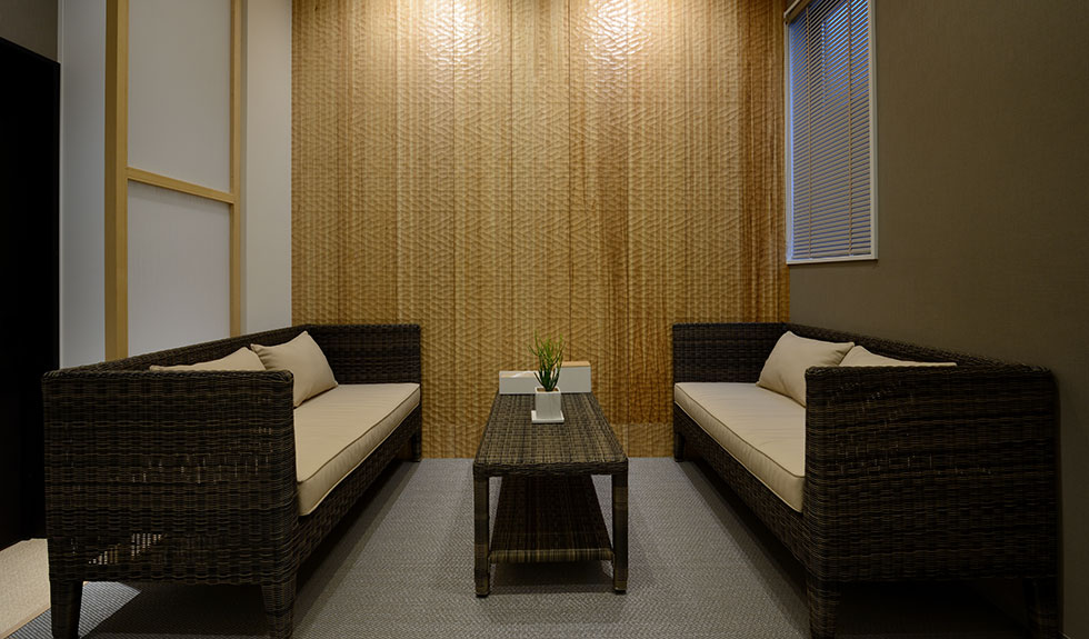 泥パック室のインテリアは、トルコのオットマンスタイルで内装されて、雰囲気と北アフリカ本場の泥パックを体感いただけます。